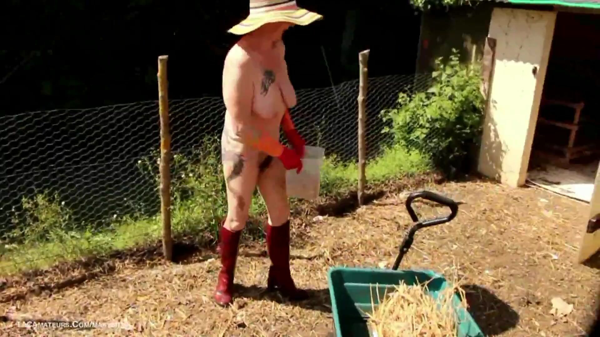 Special video for rubber boots fetishists, I like to live naked at home and in this video you will see me naked with my rubber boots and my gloves cleaning my hen house, I pick up the eggs, I give seeds to hens, I change the straw.