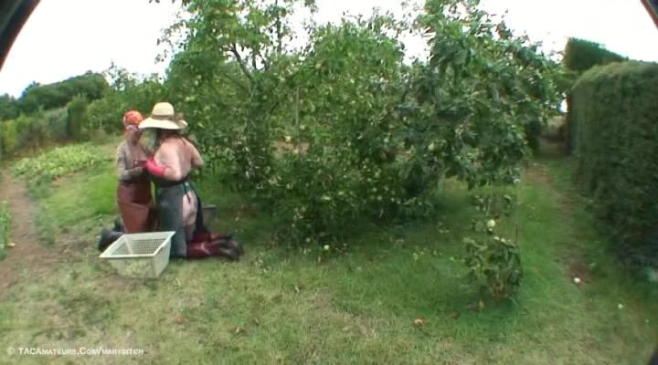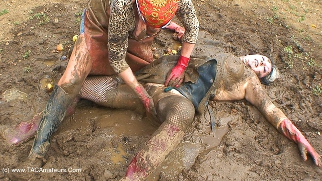 With my German friend Helga a beautiful mature misstress, we are clothed with an apron and rubber boots and we play in the mud. She masturbate my pussy, kneads and smears my breasts in the mud and she flogg my ass with a leather belt... all dirty, we wash with the garden hose.