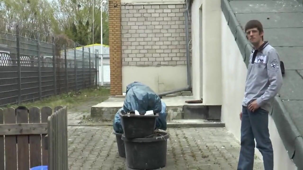 Chris is waiting for a friend who has invited her to dinner. She is waiting in front of the garage of her apartment. The two guys saw Chris and talked to her.Chris thought "fucking before eating is good". While one guy takes care, the other one takes Chris from behind and sprayed his cream in her hot cunt...
