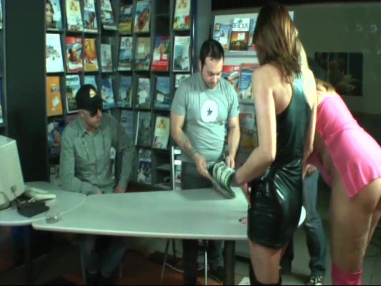 Yvi and Chris go to the travel agency. They want to book a trip to the south. The three gentlemen in the agency advise the two, but do not know where to look. Yvi and Chris wear once again only her thin dress and no underwear. From consulting in the travel agency a hard sex adventure developed. Quickly, the two girls lay on the desk and get fucked by all three men.