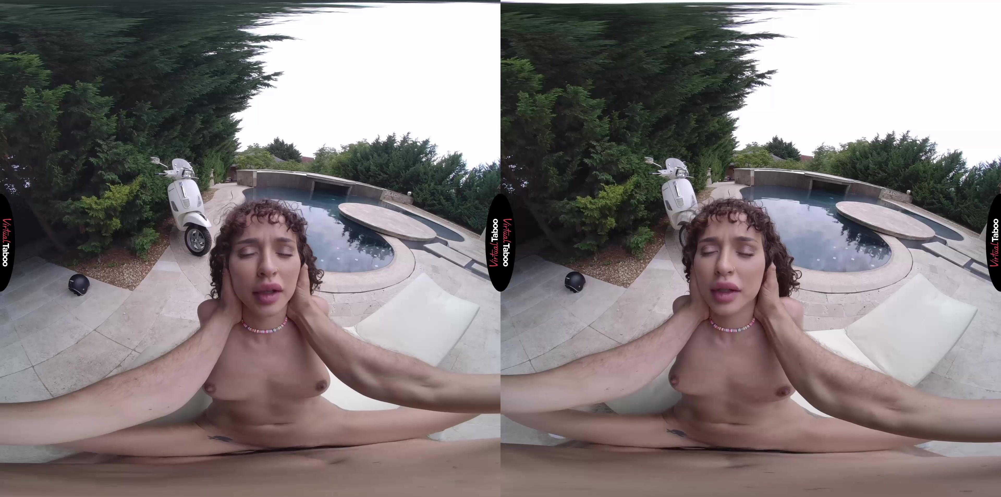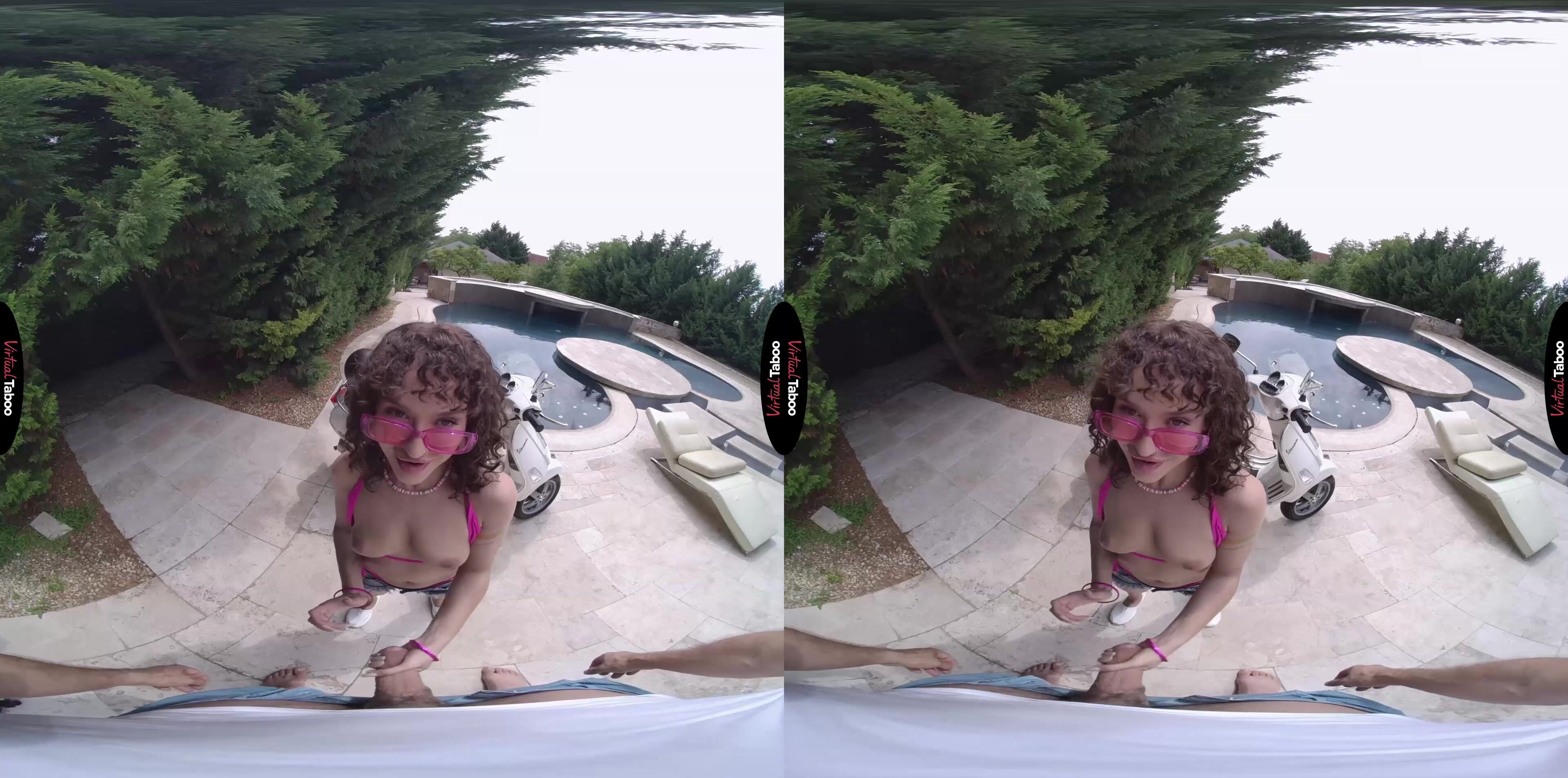 Geisha Kyd got herself into trouble. She was super horny and desperate to see her boyfriend. His car is broken down so she had to find a way to get to his house. Without a car of her own and unable to ask her parents for a ride to see a guy they don’t even want her to date, she did the next best thing. She grabbed a helmet and tried sneaking off with her stepbrother’s scooter. The plan did not go smoothly and you caught her before she could even get it started. She tried to explain it by lying about visiting her friends but you easily found out the truth. You were angry, but also couldn’t stop staring at your sexy stepsister in her tiny shorts and bikini top. She looks like a real VR model from your favourite taboo movies. It was clear what she had planned and also clear what you thought about it. Knowing she would be in double trouble for trying to steal the scooter and lying about it, Geisha Kyd VR decides to work her way out of the situation and take care of the horny feeling between her thighs. A quick flash of her tits and you know what she has in mind. Don’t tell the parents she tried to steal or sneak out and her tight teen body is all yours. Seems like a fair trade. You have always wanted her and your big cock literally pops out of your jeans. Impressed by his size and how eager he is, Geisha knows she made a good deal and happily stuffs her mouth with her stepbrother’s throbbing meat. You seem ready to cum in her mouth, but she wants that dick inside of her and bends over your scooter to take you in. She loves the way you feel and rides until she can tell you can’t hold back any longer. Finishing you off with her mouth Geisha knows she won’t need to leave the house next time she gets horny. Fuck her lazy boyfriend, she can just fuck her studly stepbro.