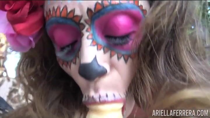 Yep, its Part 2 of Day of The Dildo, nope not Day of The Dead. You could call this softcore porn, but it's much better then just some solo pornstar video, I mean check out my makeup and Im outside doing this, anyone could be watching! Ok so, this is a tradition in my hometown that I used to observe a while back. But I thought I would add a little something special this time around. I bet the spirits from the netherworld never saw a set of tits like these before! With all this spiritual power flowing through me I hope I channel some intense orgasms! With this big dildo its a sure thing!