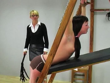 Sylvia is caught wearing too much makeup and called into the headmistress office to receive her punishment. The headmistress orders Sylvia to remove her shirt and bra, chains her hands and uses the whip to teach Sylvia a good lesson. Sylvia cries out with each lashing and vows never to wear too much makeup again.