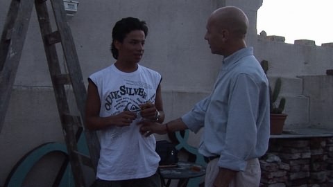The older guy come up to the roof and start playing with the boy by blowing his thick growing dick