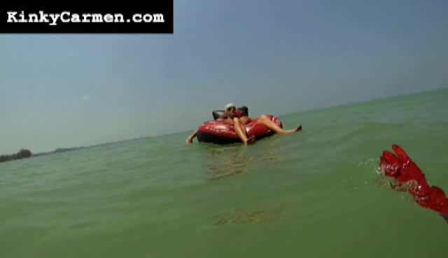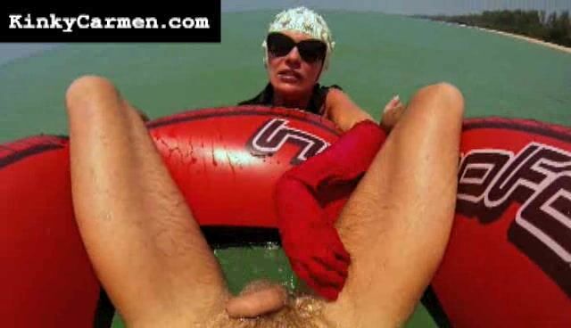 Mistress Carmen Rivera spots an intruder in her private beach. She goes for a spontaneous "sea cucumber" attack on the high sea, giving him a quick blowjob, she deals with this troublemaker at her beach house. An underwater enema and a thick cane already await this tourist\'s ass crack.