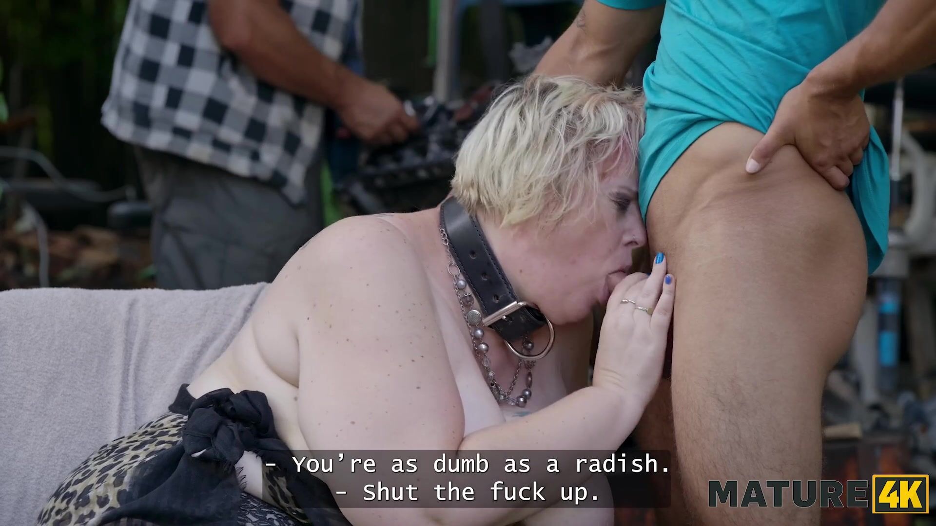 MATURE4K. Blonde with huge ass doesn’t mind to cheat on her husband with 2 strangers in public