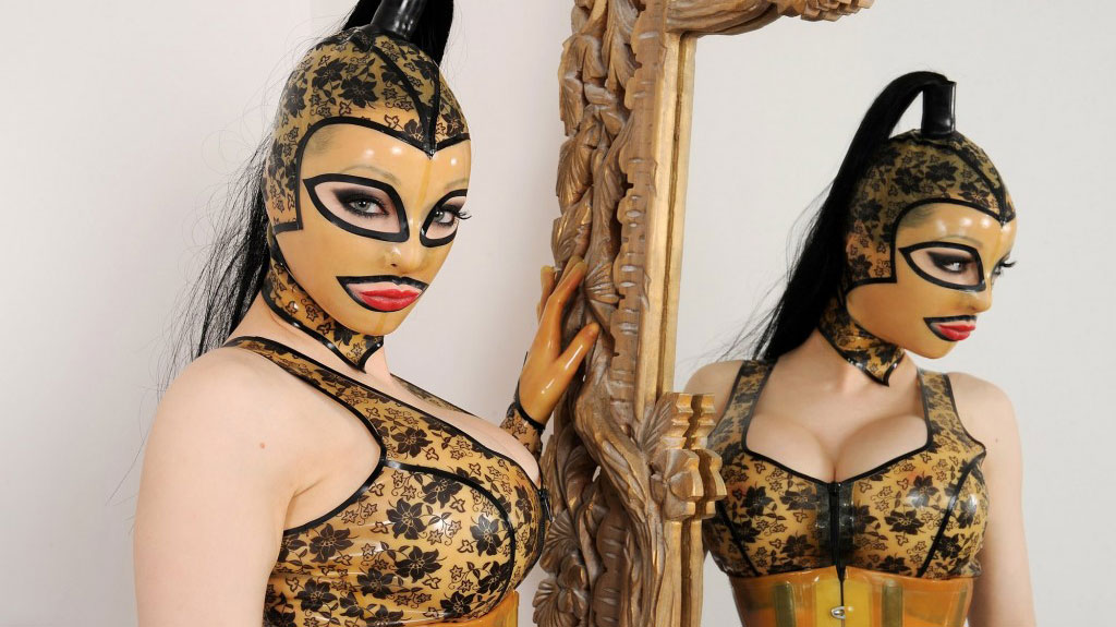 Kneel before Latex Lucy! Watch as she spreads her meaty twat and fingers her clit!
