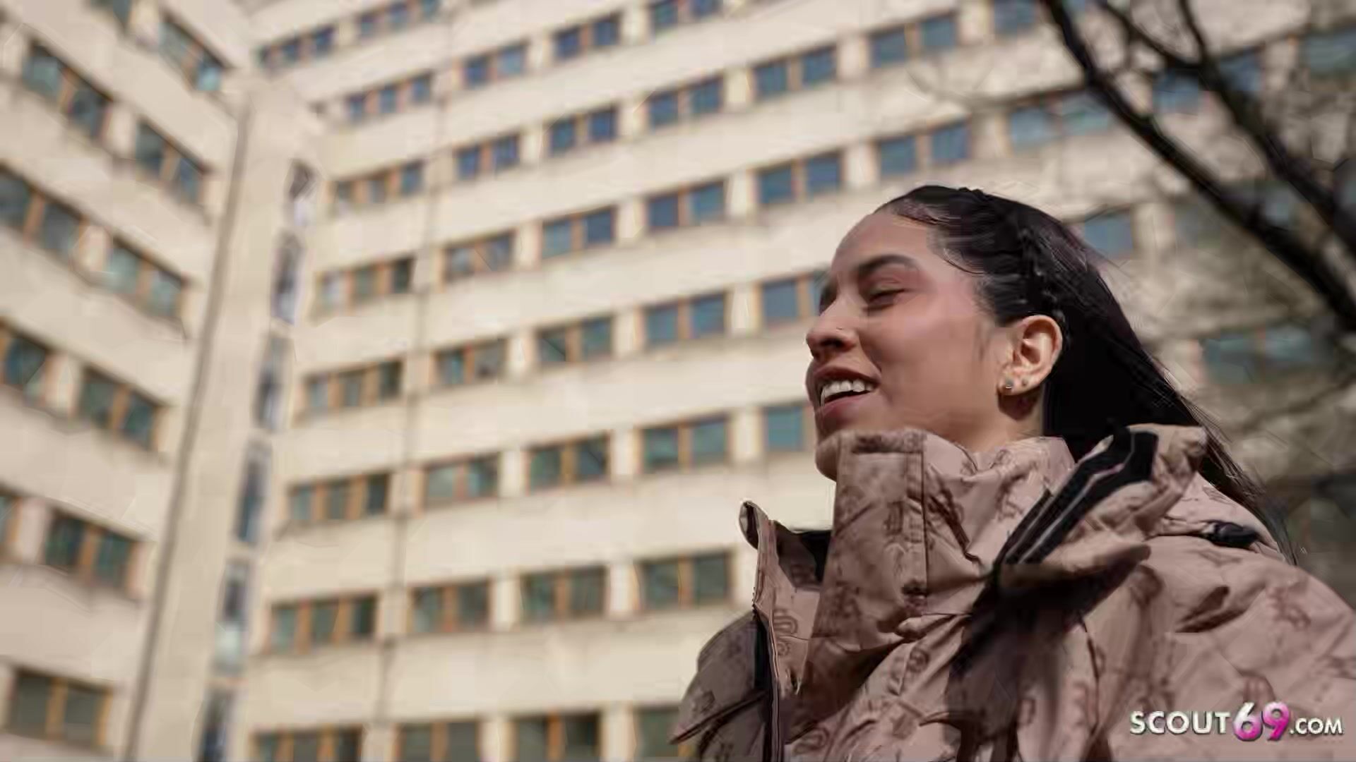 GERMAN SCOUT - Skinny Latina Teen Helen Star with big Nipples Pick up for Hard Casting Fuck