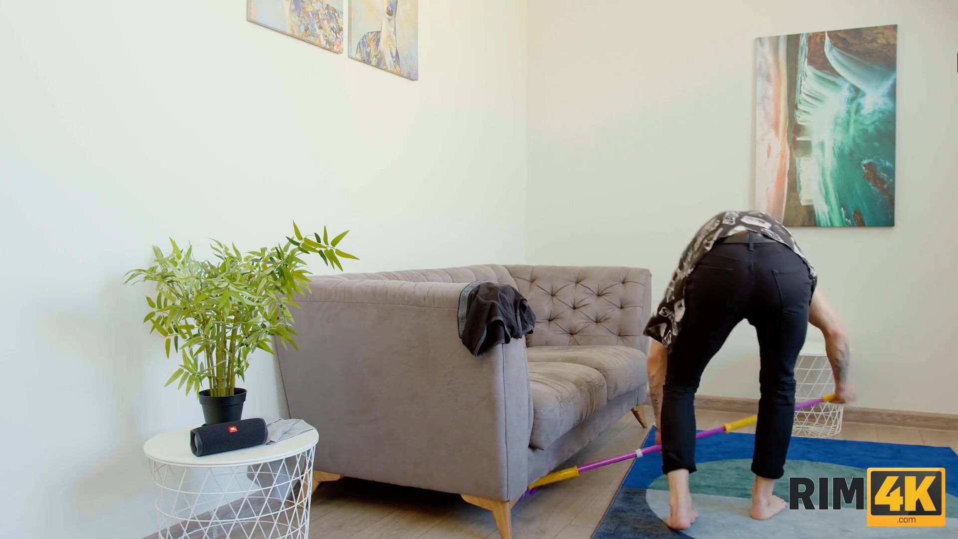 RIM4K. Stud has to postpone cleaning because of sex with two roomies