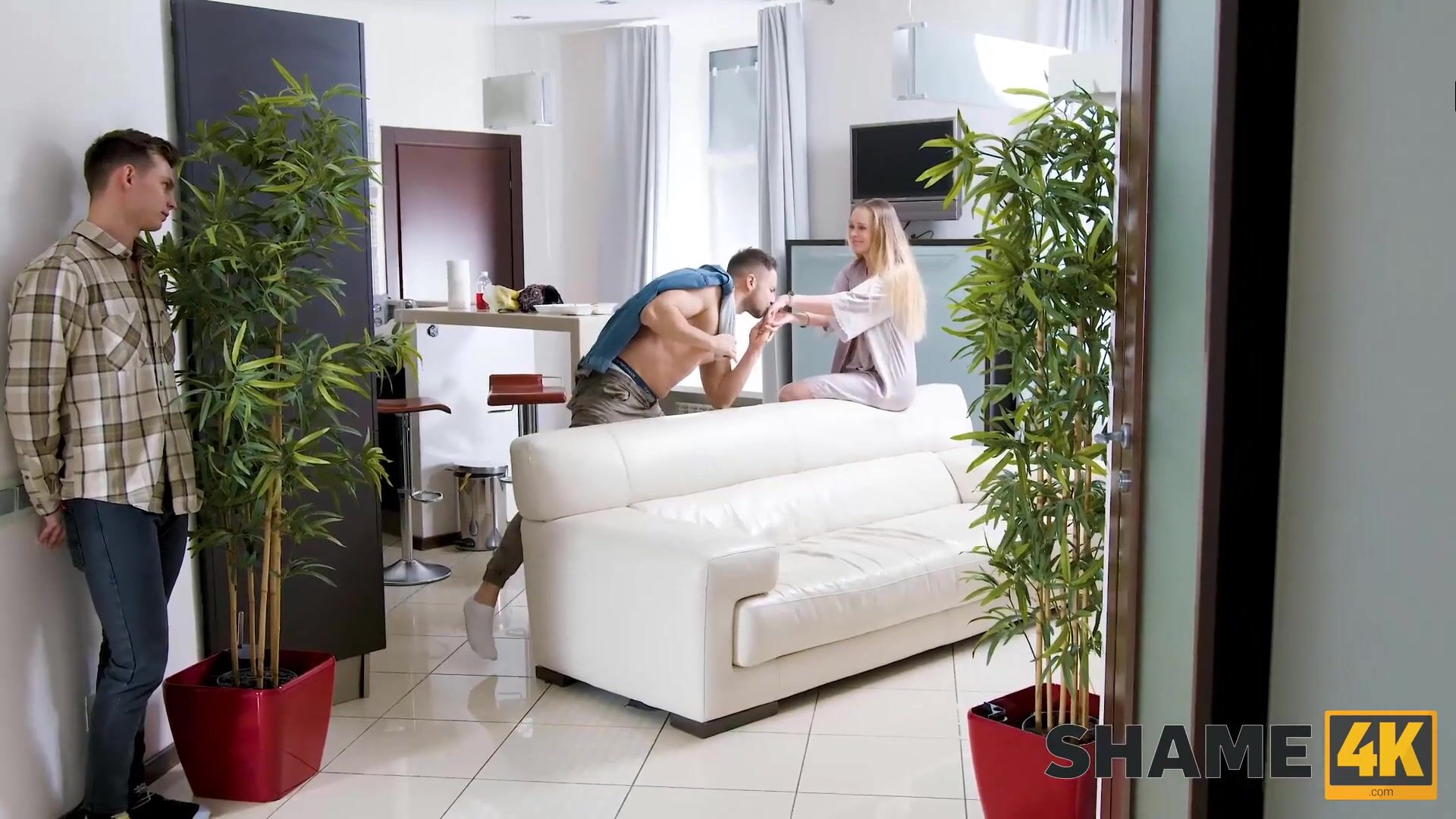 SHAME4K. Muscled lover ran away and left MILF with her husband's stepson alone