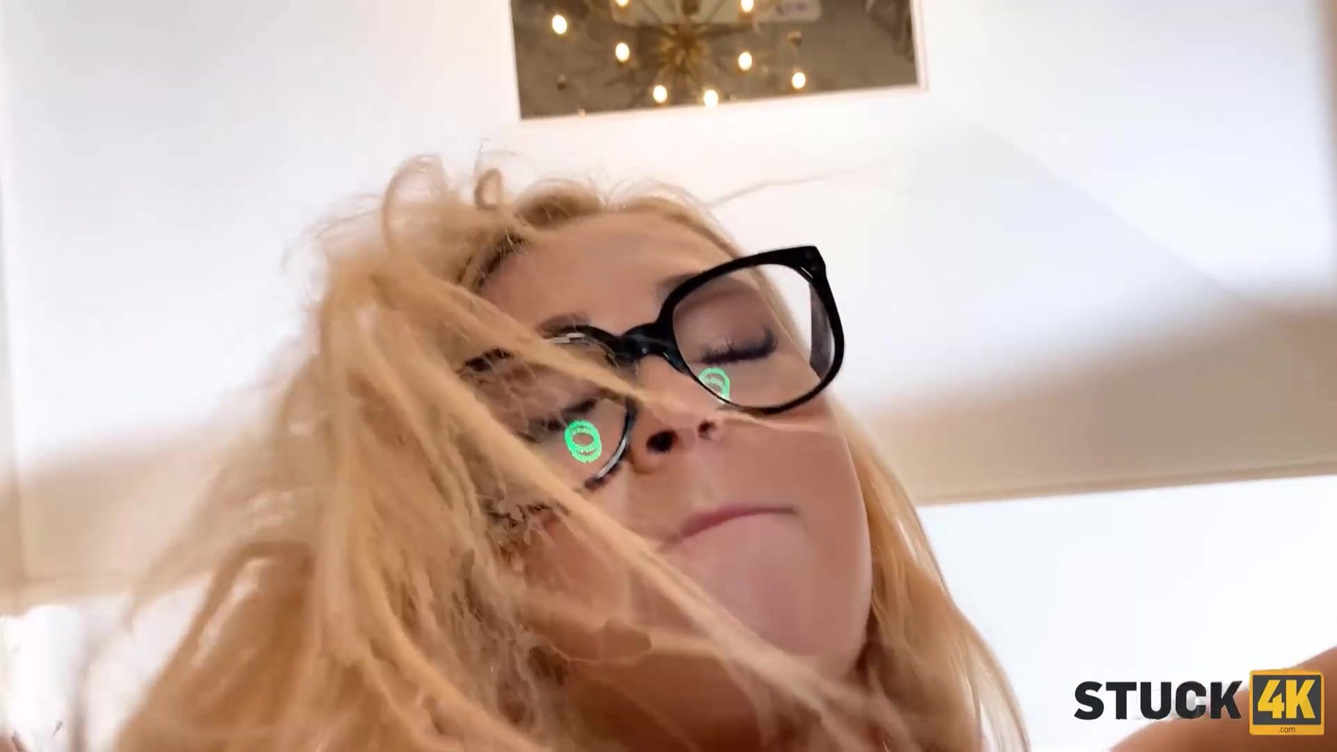 STUCK4K. Cute blonde with glasses devotes time to sex with horny friend