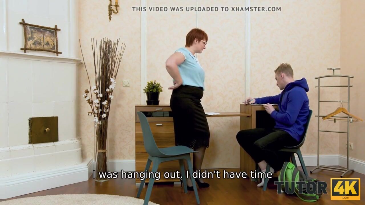 TUTOR4K. Mature redhead dragged into hard sex with impudent