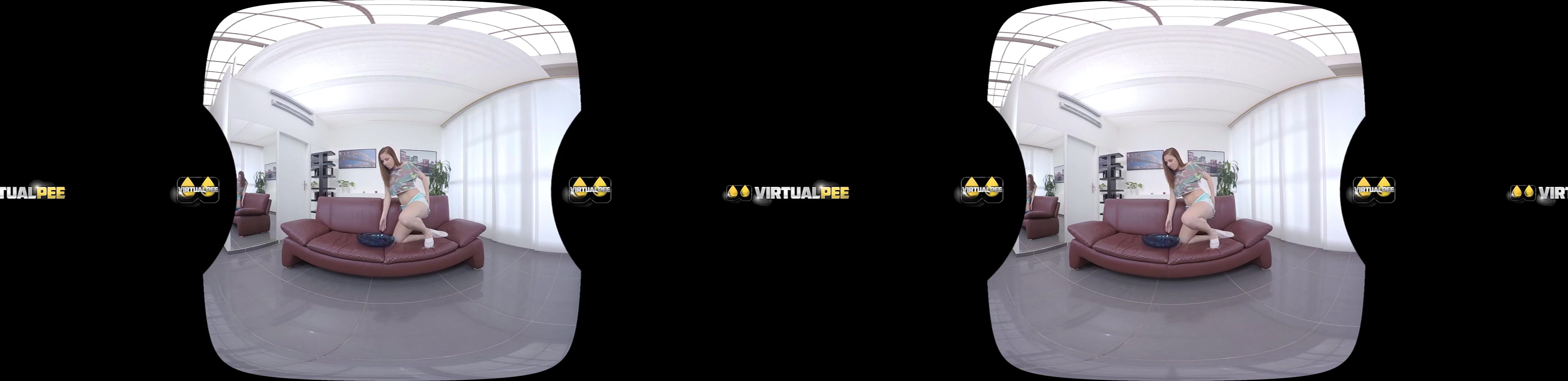 Virtual reality porn pissing with gorgeous redhead babe Antonia Sainz who takes off her pee soaked hotpants to catch another stream of her golden nectar in a bowl to taste it