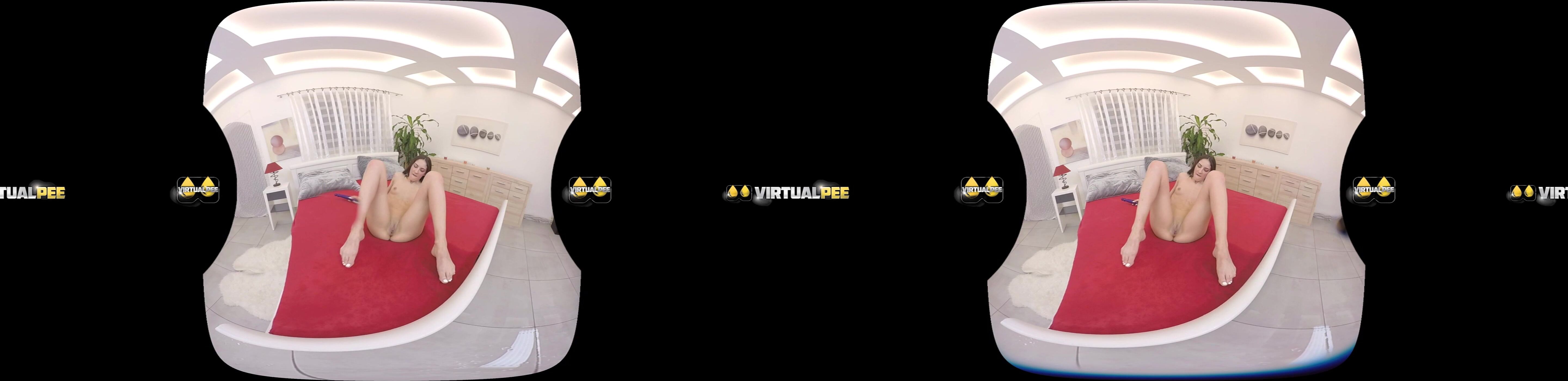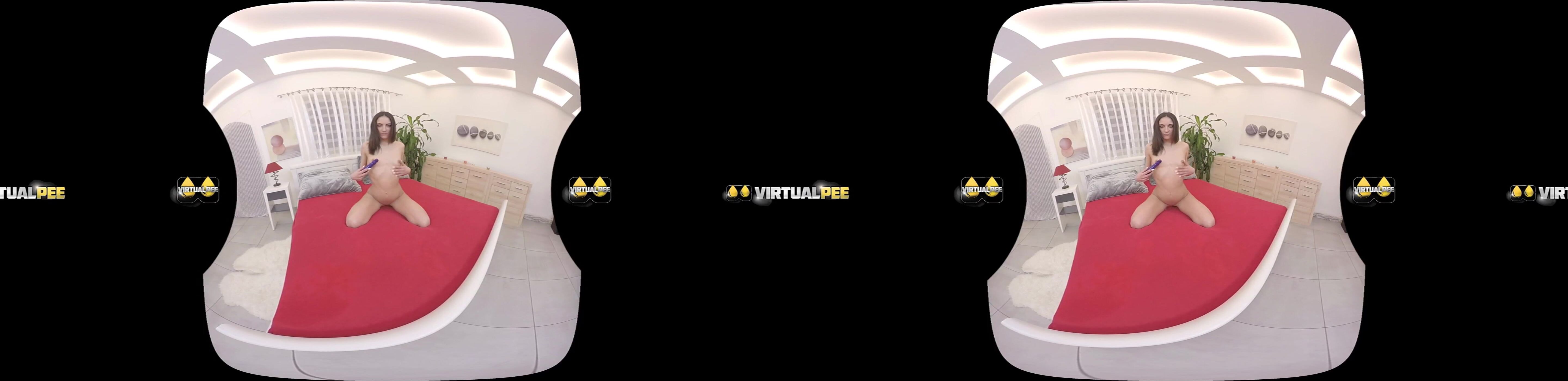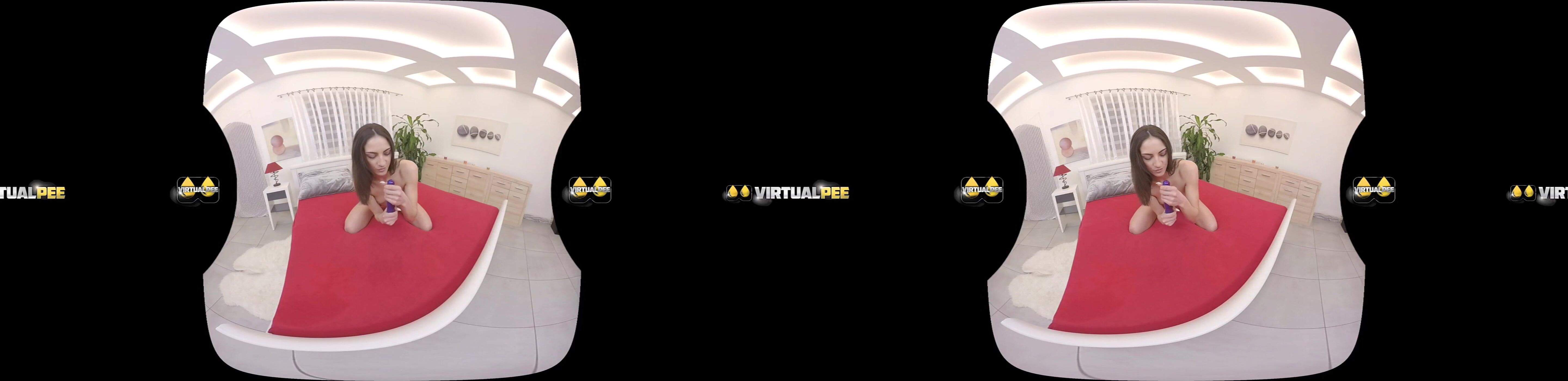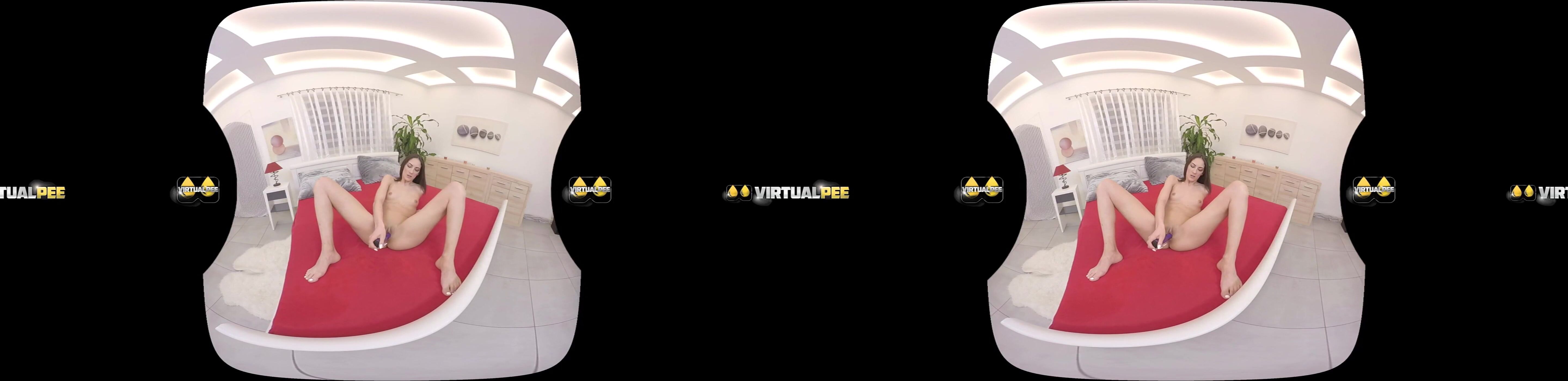 Brunette babe Miky Love in solo virtual reality pissing porn