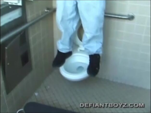 Christian goes into a men's room, with glory holes. Inside one of the stalls, he whips out his cock and starts jacking off. The camera gives us some hot perspectives of this straight boy, as he works himself to the edge. After getting off in the toilet, we get a bonus of him shooting for a second time onto his skateboard. The cum shot isn't that big, but it's good enough.