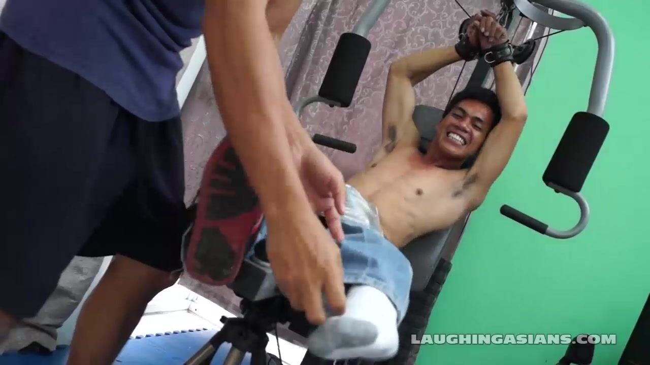If you love male feet tickling, then this one is sure to excite you beyond your wildest dreams! Cute and sexy Asian boy Argie drops by for his first gym workout with Trainer Ricky. In his usual fashion, Ricky convinces Argie that he must be restrained to the gym for his unique and intense legs workout. Argie is confused as he finds himself immobile on the gym. Ricky takes of one of his shoes and Argie is beginning to understand what this is all about. Ricky begins to tickle his white socked foot, and gets an incredible ticklish reaction. Soon the sock comes off and Ricky delights in Argies extremely ticklish male feet. It's not long before the other shoe and sock is off and Ricky is scribbling and dancing his fingernails all over Argies super smooth ticklish soles. Then Ricky gets the feathers and flickers them all over Argies feet. Argie is about to crawl out of his skin and the relentless tickle torture goes on non-stop for 16 minutes.