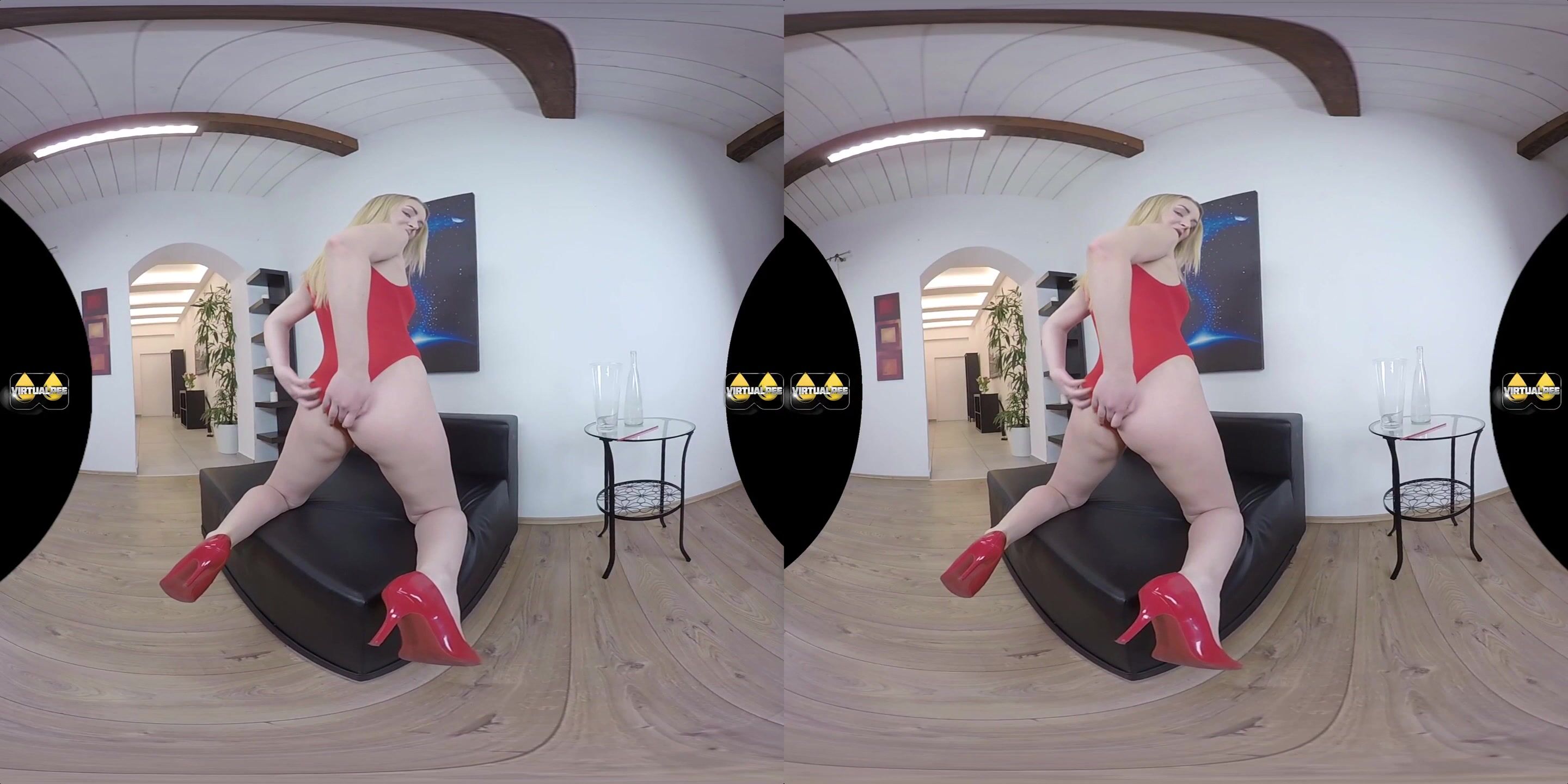 Naughty blonde Amaris features in a VR pissing scene where she pulls her red bodysuit between her puffy pussy then splashes herself with piss before masturbating and fucking a glass bottle!