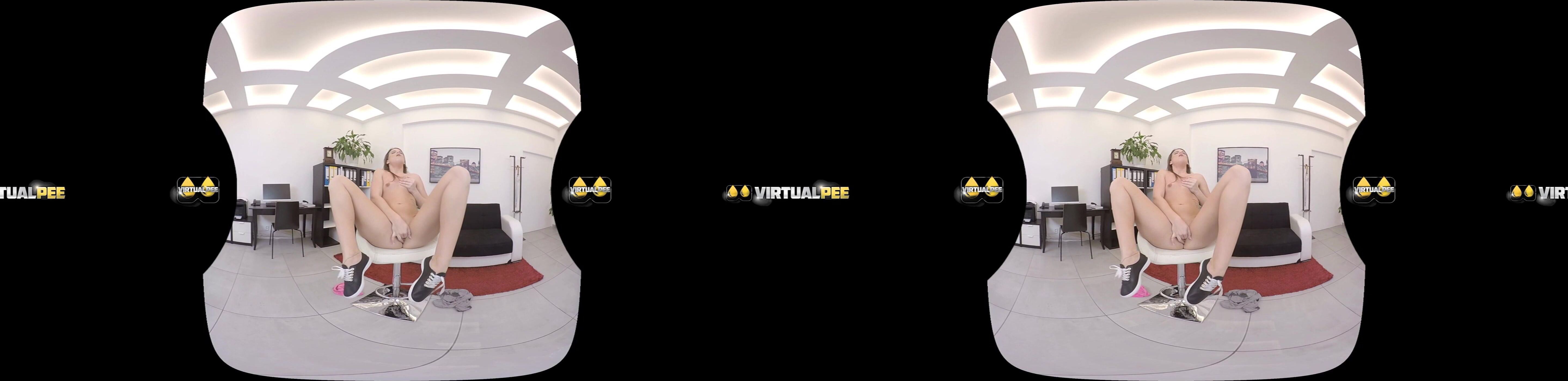 Gorgeous brunette Vany Ully pees through her leggings before stripping naked and masturbating until she orgasms in this virtual reality pissing video