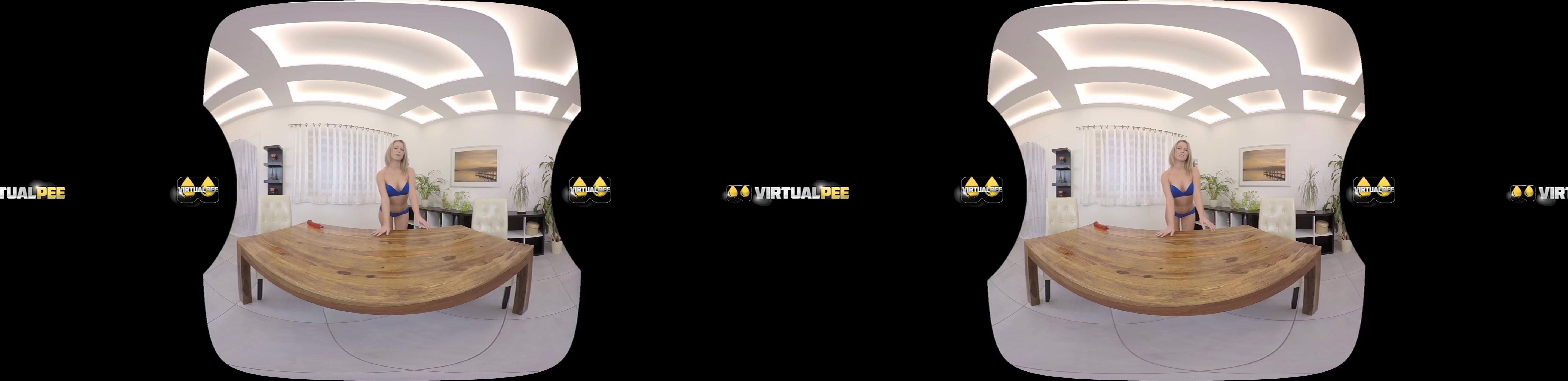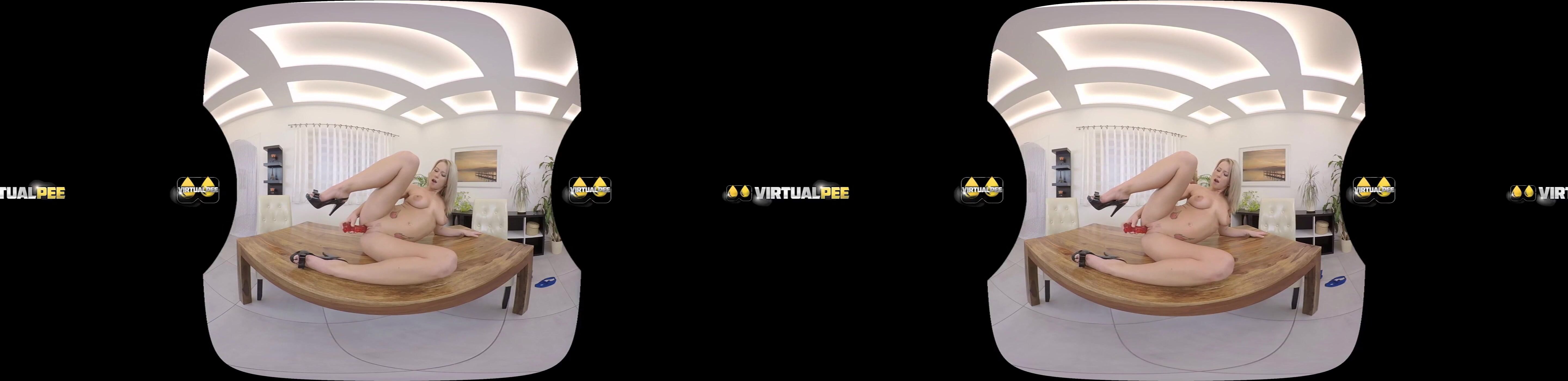 Big boobed blonde Licky Lex teases her nipples and strips off before toying a jelly dildo on the dining table. Once she has finished she sits in a puddle of her piss and splashes it over her hot body
