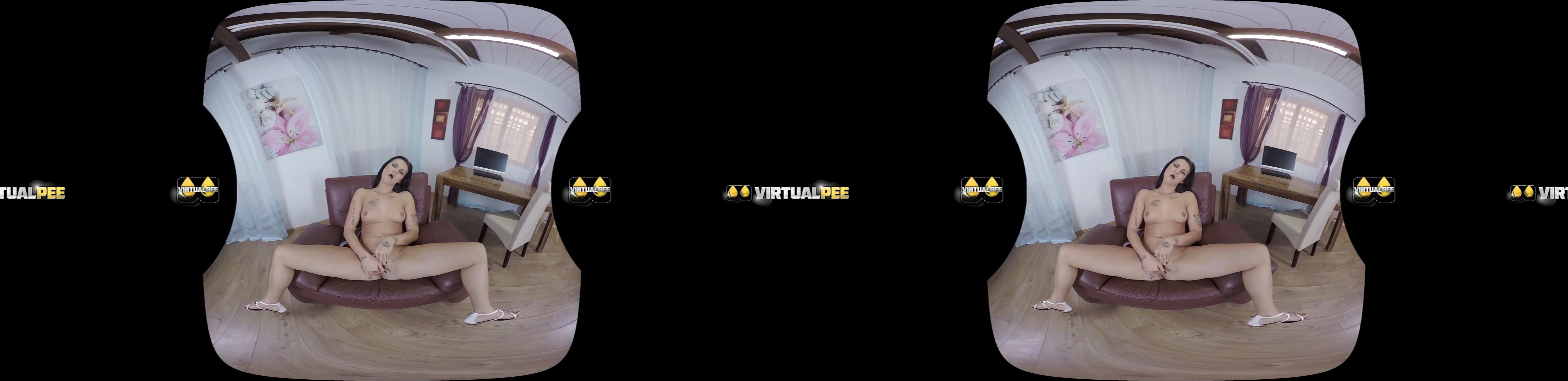 Raven haired Czech babe Isabel Dark strips out of her lingerie and fingers her tight pussy before she lays upside down to spray her own golden piss over her hot tattooed body