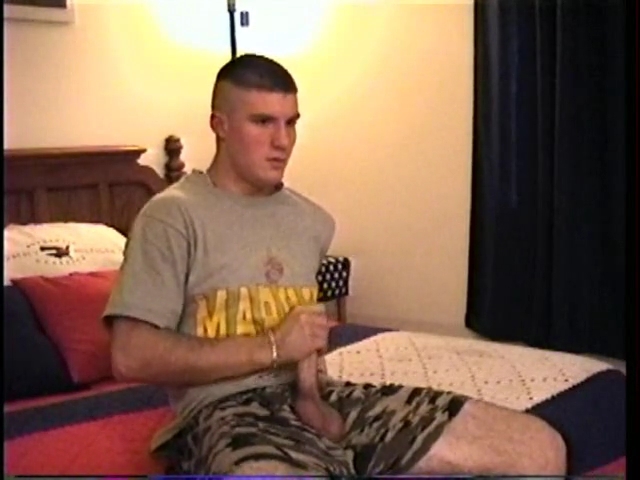 This cocky straight soldier boy shaves his face, and then lets Vinnie shave his head to complete his military look. Back in the bedroom, CJ strips down to his camouflage boxers and Vinnie is all over his dick. With Vinnie out of the room, CJ gets into some heavy stroking. Before he has a chance to return, CJ stands and launches a huge cum load onto the floor.
