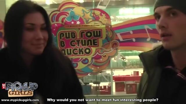Blow job in the restroom from a sexy brunette who was just picked up by pick-up artists.