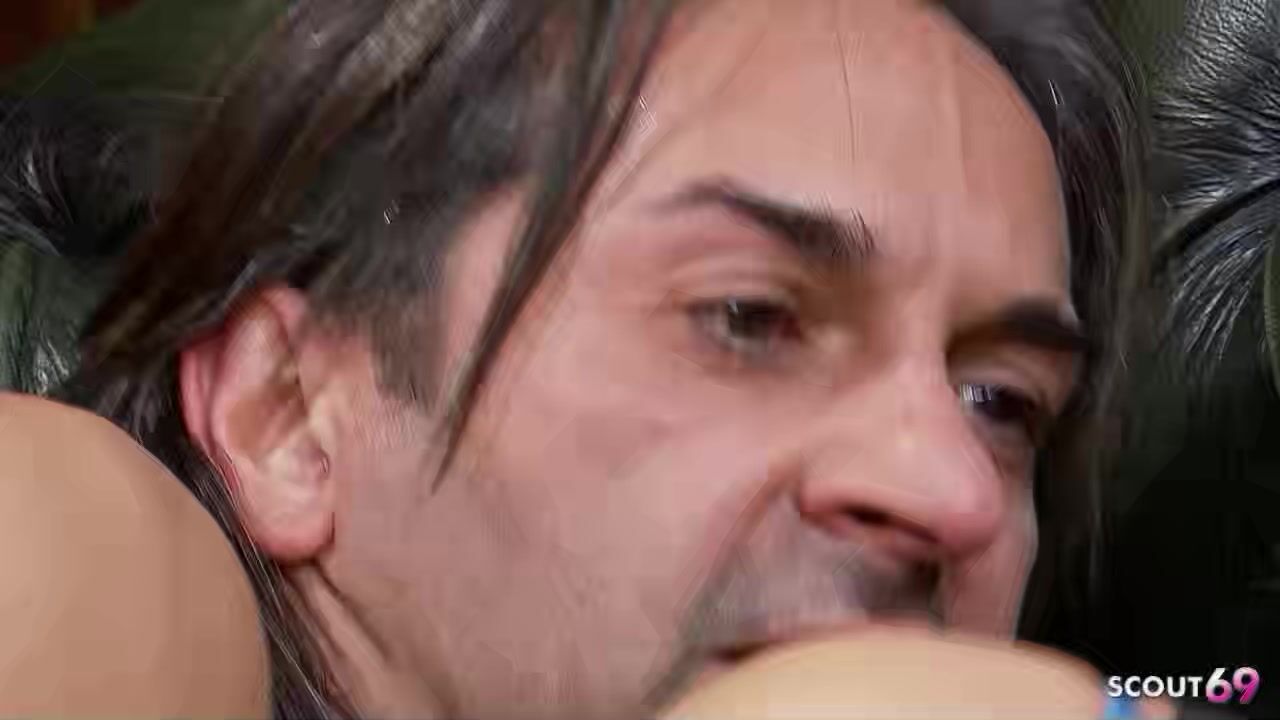 Blonde Girl with perfect Tits in Denim Jeans Outfit with blue Stockings seduce to Hard Fuck