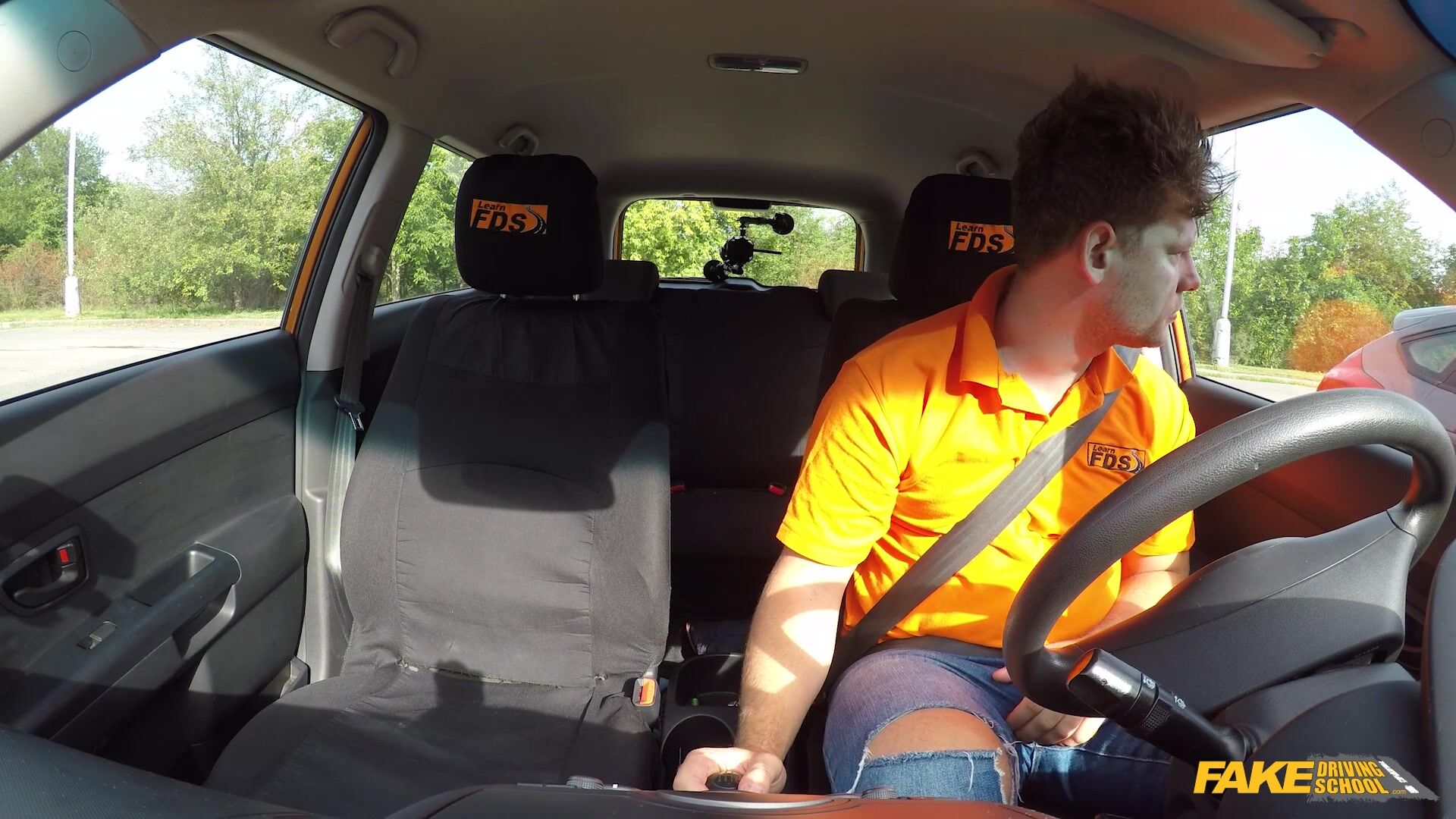 I was feeling a little worse for wear after a wild night of partying but I had a job to do, which was to teach Ginebra Bellucci how to drive. Ginebra had never had a lesson before, and well, maybe I was a little out of it as I was driving, I admit it. She didn't have to get all scared though, or cry out for her mother! Eventually, I pulled over to get a quick power nap in, but then I saw her tight ass in her jeans, and it made my dick hard. I took it out and wanked, and next thing I knew, Ginebra's lips were wrapped around my cock in a blowjob. This felt good, but you know what felt better? She took my cock inside her pussy and rode me deliciously. After some missionary sex, I pulled out and covered her in cum!