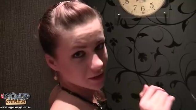 Passionate sex between a slender Russian girl and an experienced pick-up artist in the toilet.