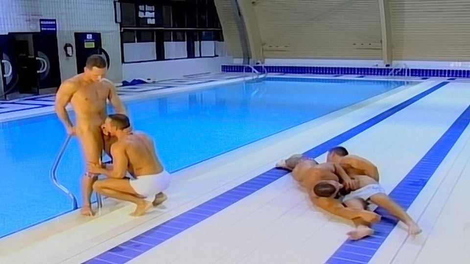 Poolside has never been hotter as these muscled swimming jocks share their cocks!