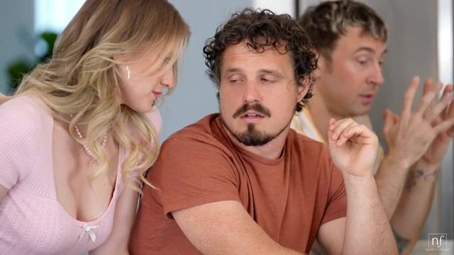 When Melody Marks is feeling bored, she goes to see what her boyfriend Chad Alva is doing. She finds him in the kitchen with his friend Robby Echo. The guys are planning a film about Greek mythology, which sounds nice and all, but Melody is in the mood for them to entertain her.After flirting with both Chad and Robby, Melody suggests that maybe they should take a break. Knowing that they're going to get some, the guys are fast to agree. Even as Robby and Chad get to their feet, Melody drops to her knees between them to pop both hardons out and begin sucking them off and stroking the shafts.The guys take a few moments to guide Melody to the couch. There, they fondle her tits and clit, and then Chad takes a seat so Melody can slide down onto his fuck stick and ride him in reverse cowgirl. The position lets Melody resume sucking Robby off as she bounces away.Getting on her side, Melody spreads her thighs so Robby can eat her out as she slurps her own juices from Chad's hardon. Then Robby slides deep inside, banging Melody as she keeps Chad's sausage nice and hard. Then Melody does some fluffing for Robby as Chad bangs her in doggy.Turning around on her knees, Melody takes another doggy style pussy pounding, this time from Robby. She deep throats Chad's fuck stick at the same time, urging him to cum in her mouth even as Robby gives her one last big O. A moment later, Melody turns around to take a mouthful of Robby's jizz, too.