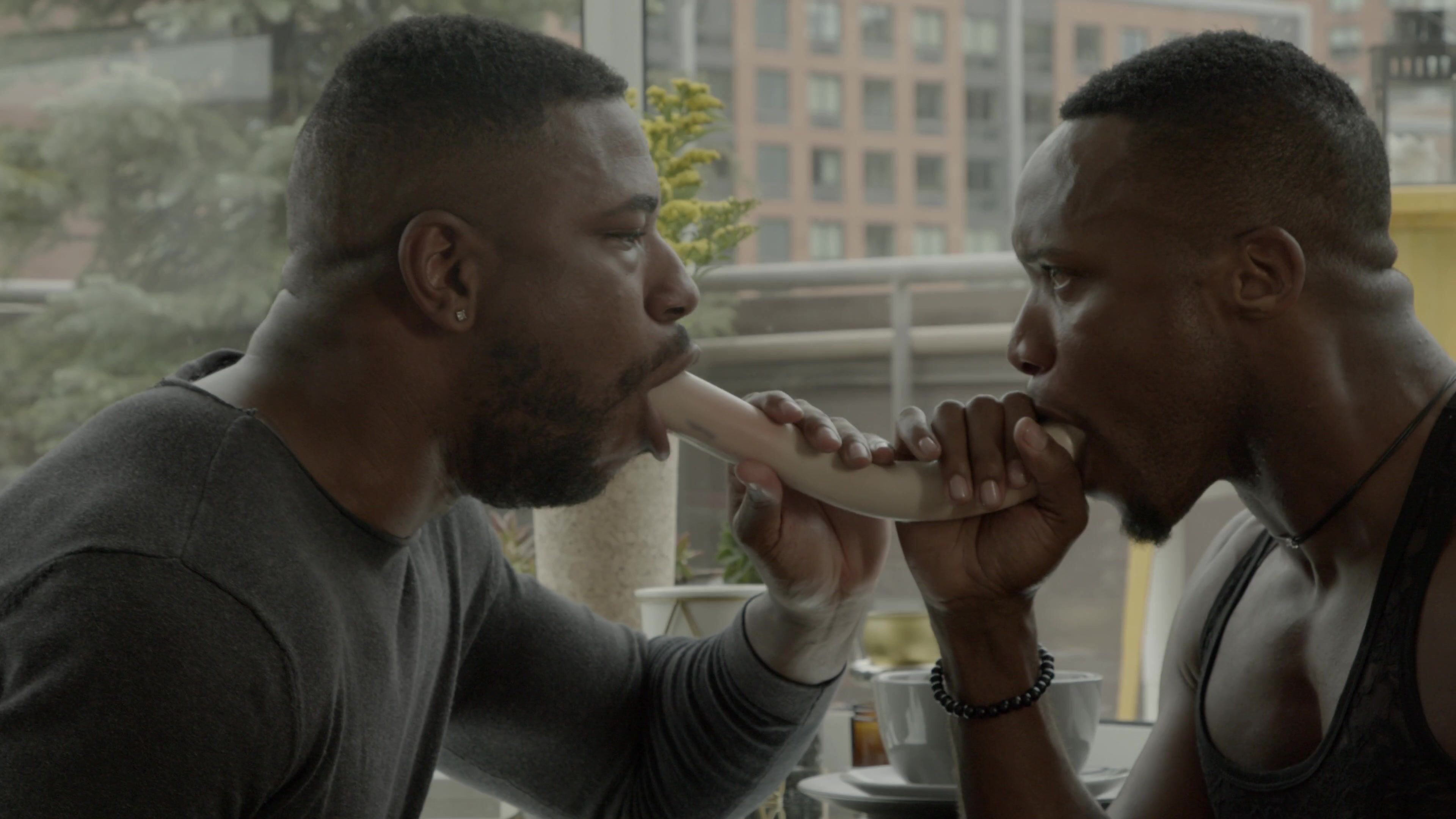 Andre Donovan has never bottomed for anyone, but boyfriend Reign just beat him in a series of horny games and now he has to open up his hole for the very first time. Still on their balcony, Andre bends over as Reign’s entire face disappears between his cheeks. Reign rims and fingers the first-time bottom before letting Andre swallow his hard cock. The two move inside as Reign gives his boyfriend’s ass a hard slap and slides his meat into his untouched hole raw. Unable to control his reaction to being filled up by Reign’s perfect dick bareback, Andre moans and grasps for his man as the hung top pumps himself in and out of Andre’s newly-stretched hole. Reign pulls out of his tight ass just in time to cover him in a sea of ropes with Andre adding to the mess seconds later by stroking out his own load of thick jizz.