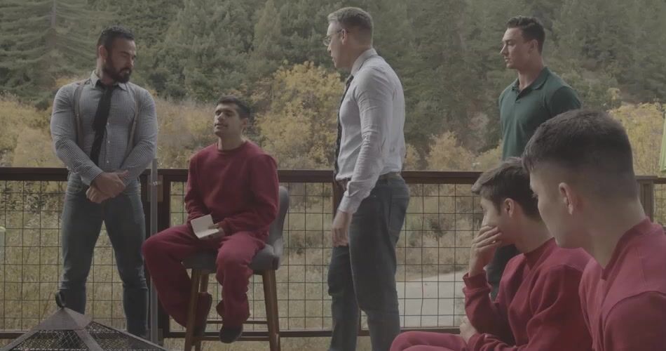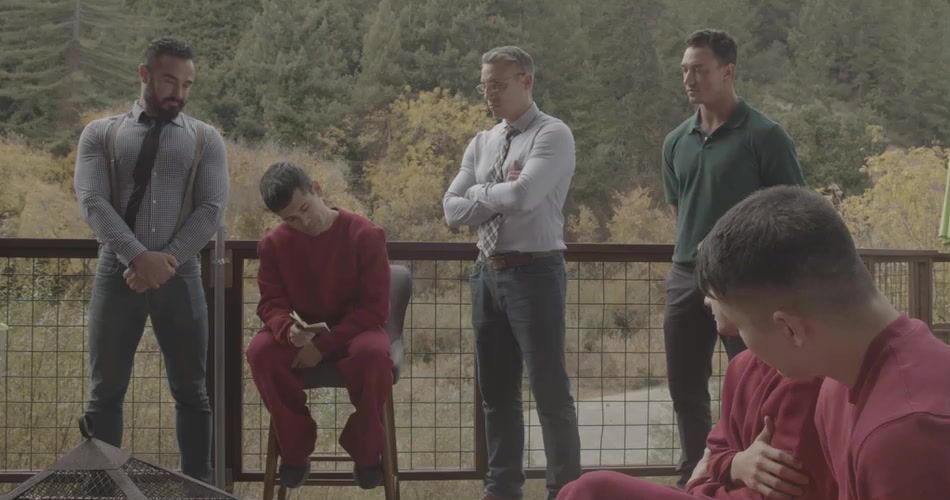 The boys at the conversion camp hear a loud alarm go off, which means there is an emergency sermon, so they rush into the lecture hall. The pastor is up front with Phillip (Ty Mitchell); he is sitting in a chair facing the crowd of hesitant boys. In order to not lose himself in conversion therapy, Philip had written a description of his first man-on-man sex in his phone, and the pastor is forcing him to read it aloud in front of the others and his father. As he describes the kiss, the taste of his skin, the throbbing of the dick in this mouth, the feeling the first time his body was entered… His father finally begs him to stop and he hits the boy - striking him to the ground. This was the last straw; Charlie (Colton Reece) and Philip devise a plan to escape and finally be together. Once they ditch the camp, they find an abandoned truck and Phillip wastes no time getting Charlie’s fat cock down his throat. After feeding Phillip his cock, Charlie hits his knees and returns the favor with a sopping wet hummer before bending laying him back on the ground and pushing his cock deep inside the stud. Switching it up, Phillip holds onto the side of the truck so Charlie can continue his prostate drilling. When Charlie can’t hold back any longer, Phillip gets on his knees and gets a load all over his face. Charlie gets down to receive Phillip’s load on his face and tongue right after. After they’re done, you’ll never guess who they catch alone in the backseat of a truck.