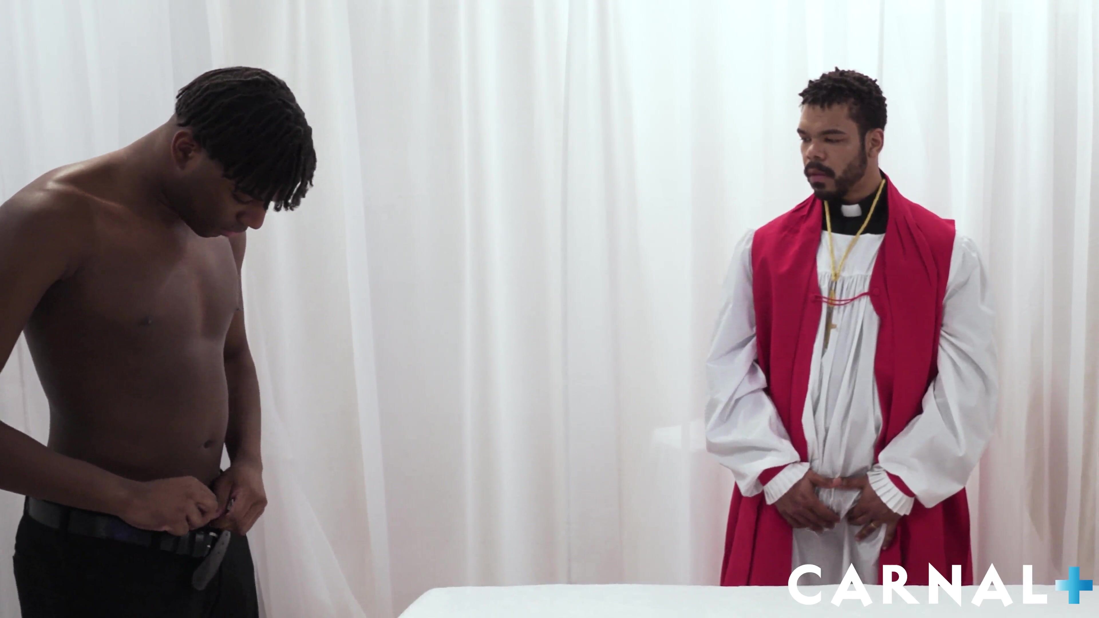 This week at Fruits of Life COGIC, Deacon Johnsyn is welcoming another fit handsome young man into the congregation. Of course, the deacon must make sure that young Adam Kylan is properly sanctified and set off on the path to righteousness. The deacon anoints Adams' skin with holy oil until it gleams. Then he worships at the altar of the virgin young man’s beautiful untouched ass before breaching it with his sacred staff to give the boy the gift of his seed.