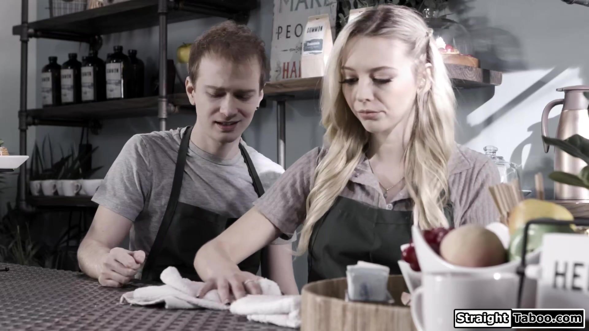 Lily Larimars bf cheated on her for being too uptight.The small tits teen will prove she can be freaky and sucks him behind the counter of the cafe.He fingers the blondes pussy while rimming her.At the risk of getting caught they fuck in public