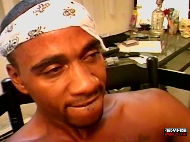 Muscled black hunk Soloman beats his big meat and pumps out a thick messy cum load