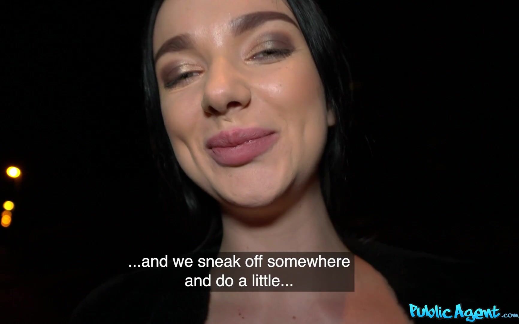 I saw this stacked brunette on the side of the road, so I walked up and introduced myself. Lady Gang told me she was waiting for a man, and I asked if that was a kind of man with a few crowns on him. I just happened to be that kind of guy, and for 4000 crowns, she agreed to show me her big, fake tits. I paid her more to see her booty, and saw she was wearing sexy black lingerie. For 8000 more crowns, we went off to this quiet spot and she gave me a blowjob. My big cock in her mouth made her wet and horny, so she let me fuck her pussy standing doggystyle. After, she kept blowing me, then we lay down. I pounded her in spoon position, then pulled out and came on her shaved pussy!