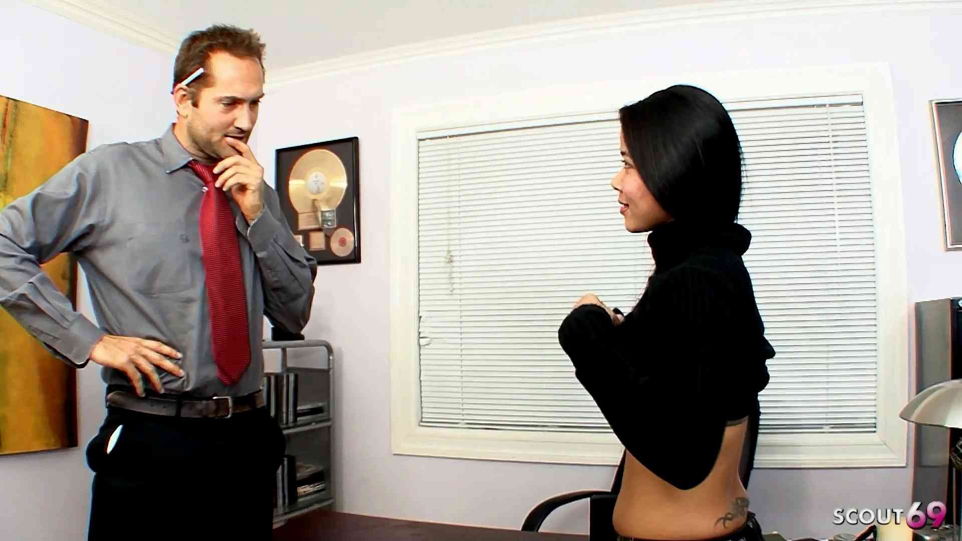Half Asian Desi Teen with small Tits seduce to Fuck by older Big Dick Guy in Office at Job interview