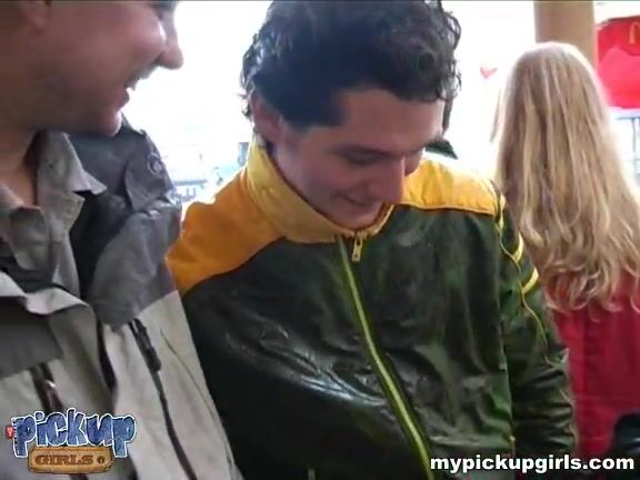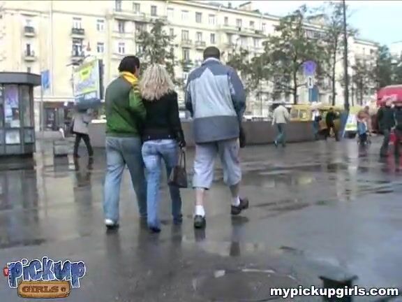 Curly blonde in a scarf licks the cock and has an amazing sex with a strange in the street