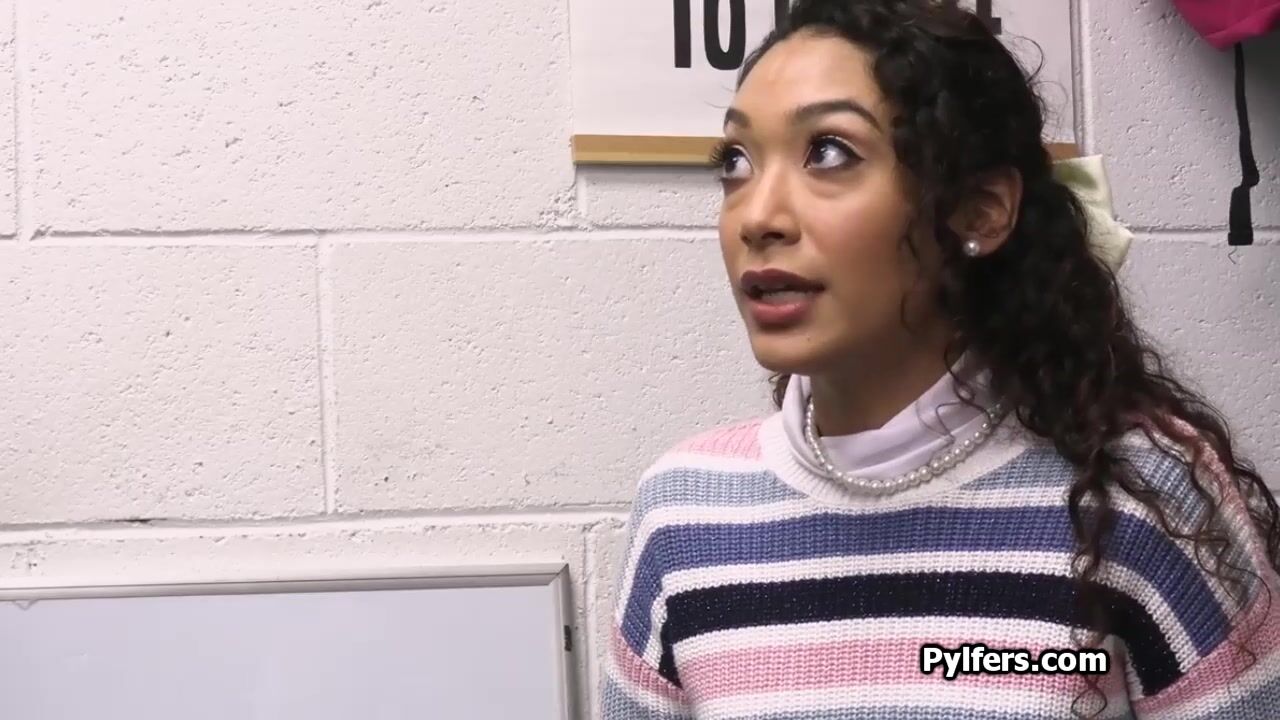 She just tried to steal some random adult records but now she is in the backroom on questioning.. maybe its time to get fucked for real by a man!