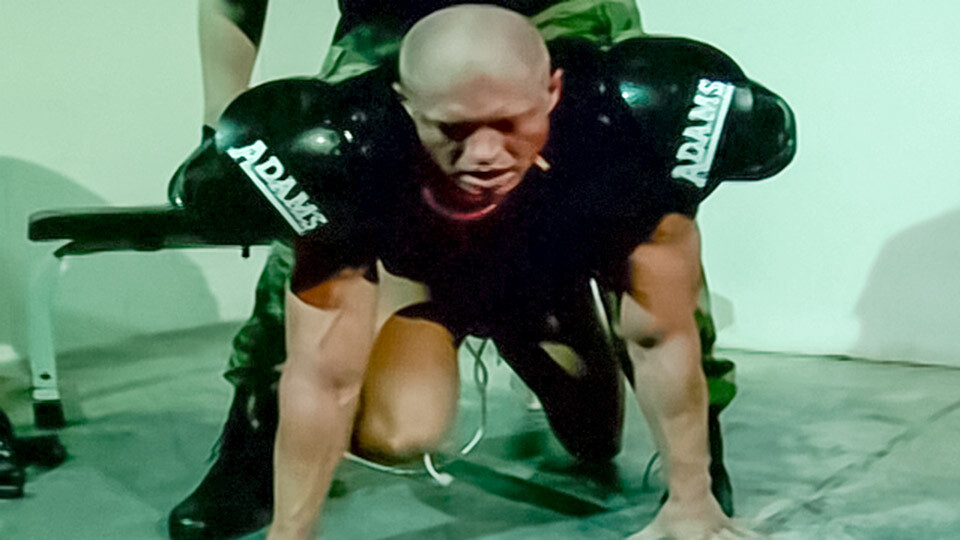 Star player Beau gets his balls stretched by Master Callahan while the shock collar continues to control him.