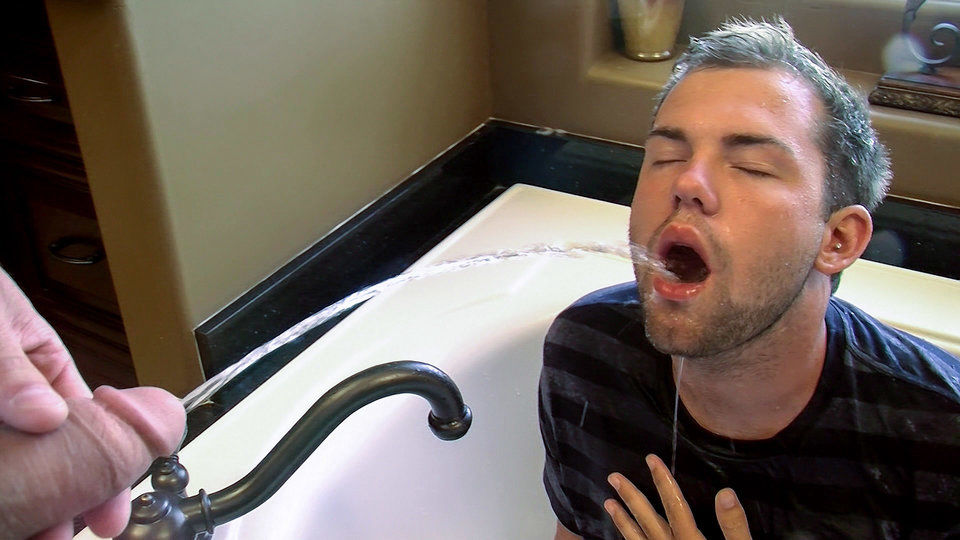 Greedy piss pig Preston takes on four cocks in the bathroom! So much cum and urine!