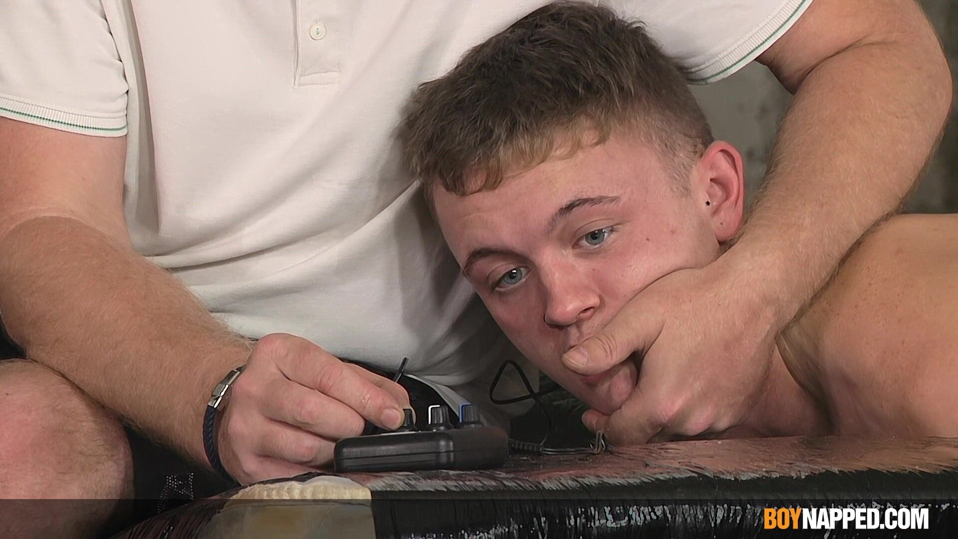 Little Oliver is soon yelping when the electrode in his ass jolts him with pain!