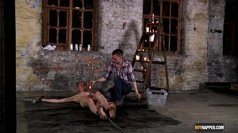 Calvin Croft cries out as dom boy Ashton Bradley covers his body in hot wax