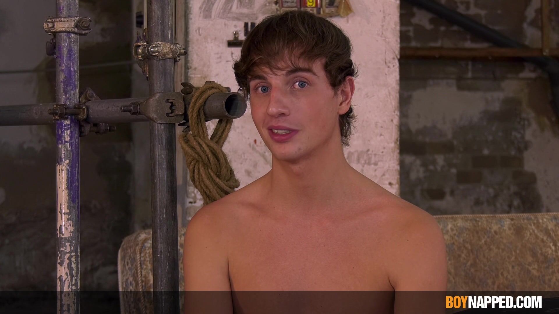 Bound boy Casper gags on that big uncut cock and gets a massive load in his face!