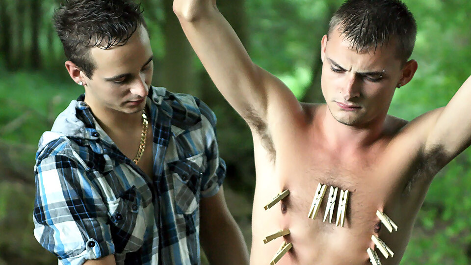 Tony gets an assault from hung boy Luke in the woods and has his cum wanked out