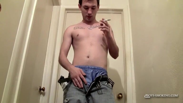 19 year-old smokin twink Paradox starts into his pack of Marlboro Blacks and chains one after another while he works on his thick cock! After half a pack, Paradox unleashes a huge load of jizz!