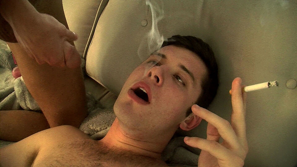 Ryan Connors fires up some Newports for Chase Young and himself on the couch. Chase gets on his knees to suck Ryan's cock and balls while Ryan kicks back and smokes. Finally Chase sits down and rides Ryan's huge dick smoking and moaning the whole time! After a hot, long and smoky fuck, Chase gets a load all over his adorable face!