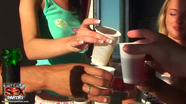 Students hate loneliness and quietness and they always strive for huge noisy companies with lots of drinks, laugh and controversies! Six knavish studs having no desire to study anymore decided to gather in one of their friends’ place and spend some good time together, time saturated with any dirty things all students always do-deep drinking, smoking cigarettes, dancing and talking about nothing. To make a long story short it had to be a common student party with few mess hall and noise. But things change different as one of the guys finds a home camera with the empty tape inside. Who else but kinky studs could have an idea to make their own exclusive movie to watch it together later!First this amusement carries rather innocent character as the modest chicks shamelessly pose in front of the recording camera saying some silly things and smiling. But each successive bottle of beer helps all guys feel themselves really comfy and absolutely hot! It’s something new for them, something that nobody tried before. Then why not to have sex on working cam and then enjoy this homemade hardcore all together? Seems everybody liked this brilliant idea and very soon all boys and girls were naked, hot and ready for hot session.These extremely naughty people split into horny threesomes with lecherous cock addicted babes just loving to feel bone hard peckers deep inside their burning bodies! Their every hole begs for more and more rough drilling and widely opened mouths appear to be really hungry and starving for fresh creamy cum! They want to taste each dick’s delicious semen so try to do all the best and swallow hot meat as good as possible juts to get that bracer! That’s how a good student party goes by and no doubt they will remember it for a long time!