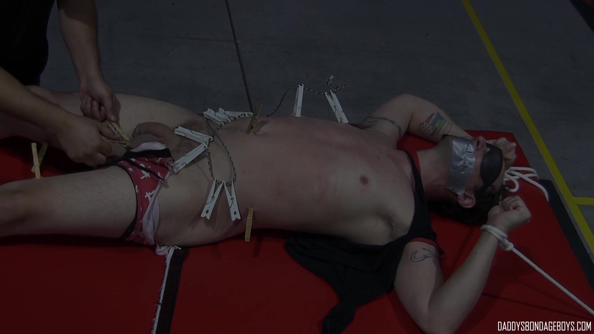 Master tears the clothespins away from his flesh, the pain searing through him.